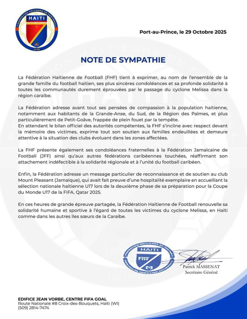 𝐋𝐚 𝐅𝐞́𝐝𝐞́𝐫𝐚𝐭𝐢𝐨𝐧 𝐇𝐚𝐢̈𝐭𝐢𝐞𝐧𝐧𝐞 𝐝𝐞 𝐅𝐨𝐨𝐭𝐛𝐚𝐥𝐥 (𝐅𝐇𝐅) 𝐩𝐫𝐞́𝐬𝐞𝐧𝐭𝐞 𝐬𝐞𝐬 𝐜𝐨𝐧𝐝𝐨𝐥𝐞́𝐚𝐧𝐜𝐞𝐬 𝐚𝐮𝐱 𝐬𝐢𝐧𝐢𝐬𝐭𝐫𝐞́𝐬 𝐝𝐮 𝐜𝐲𝐜𝐥𝐨𝐧𝐞 𝐌𝐞́𝐥𝐢𝐬𝐬𝐚 𝐋𝐚 𝐅𝐞́𝐝𝐞́𝐫𝐚𝐭𝐢𝐨𝐧 𝐇𝐚𝐢̈𝐭𝐢𝐞𝐧𝐧𝐞 𝐝𝐞 𝐅𝐨𝐨𝐭𝐛𝐚𝐥𝐥 (𝐅𝐇𝐅) 𝐩𝐫𝐞́𝐬𝐞𝐧𝐭𝐞 𝐬𝐞𝐬 𝐜𝐨𝐧𝐝𝐨𝐥𝐞́𝐚𝐧𝐜𝐞𝐬 𝐚𝐮𝐱 𝐬𝐢𝐧𝐢𝐬𝐭𝐫𝐞́𝐬 𝐝𝐮 𝐜𝐲𝐜𝐥𝐨𝐧𝐞 𝐌𝐞́𝐥𝐢𝐬𝐬𝐚 Lire la suite »